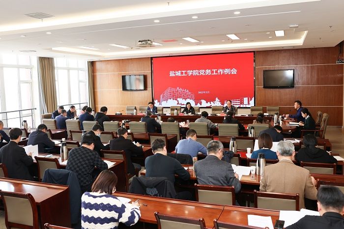 3月10日下午,在希望大道校区行政楼九楼视频会议室,学校召开党务工作例会,听取党群部门通报并部署3月份主要工作。党委书记方海林,党委副书记、校长邵荣,党委副书记薛浩,党委常委、组织部部长邢晓平,党委常委、宣传部部长奚新国出席。薛浩主持会议,各党群部门和二级党组织负责人参加。