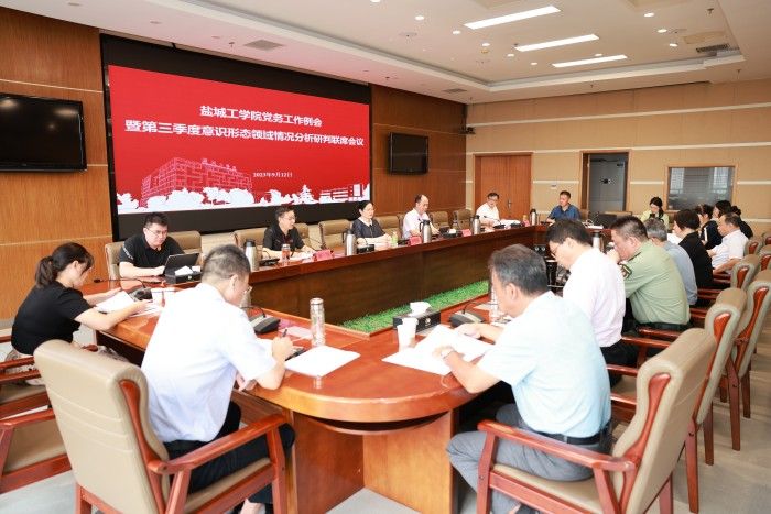 9月12日上午,在希望大道校区行政楼九楼视频会议室,学校召开党务工作例会暨第三季度意识形态领域情况分析研判联席会议。党委书记方海林,党委副书记、校长邵荣,党委副书记薛浩,党委常委、纪委书记、省监委派驻监察专员陈伟,党委常委、副校长张勤芳,党委常委、统战部部长姚军,党委常委、组织部部长邢晓平,党委常委、宣传部部长奚新国出席。薛浩主持会议,各党群部门和二级党组织负责人参加。